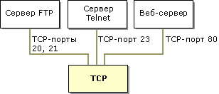 Идентификация программ в протоколах TCP и UDP обеспечивается уникальными числовыми значениями, так называемыми номерами портов. Номера портов назначаются программам в соответствии с ее функциональным назначением на основе определенных стандартов. Для каждого протокола существуют стандартные списки соответствия номеров портов и программ. Так, например, программное обеспечение WWW, работающее через транспортный протокол TCP, использует TCP-порт 80, а служба DNS взаимодействует с транспортными протоколами TCP и UDP через TCP-порт 53 и UDP-порт 53 соответственно.