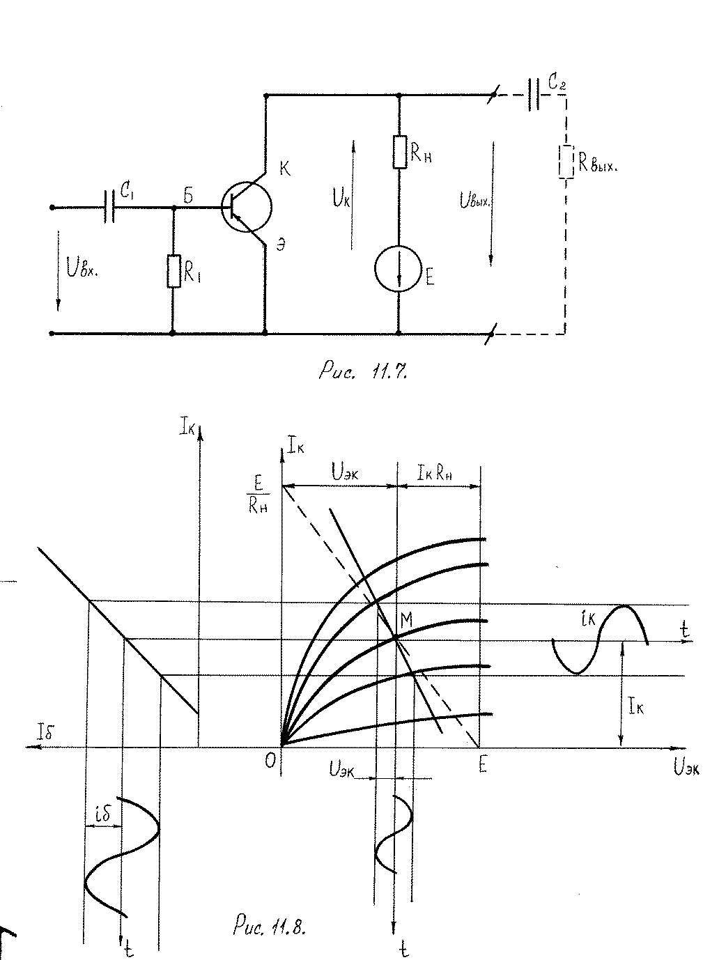 Простейший усилитель содержит транзистор, питаемый от источника Е через резистор нагрузки Rн (рис. 42).