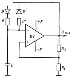 Рис. 51. Несимметричный мультивибратор наоперационном усилителе