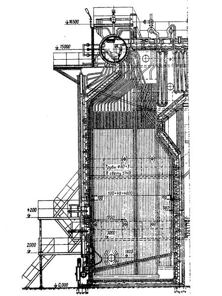 На рис. 36 представлена топочная камера котла БКЗ-75-39, работающего на газе и мазуте.