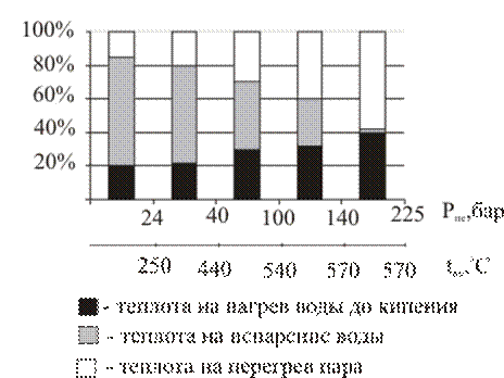 Рис. 44. Структура тепловосприятия в поверхностях нагрева