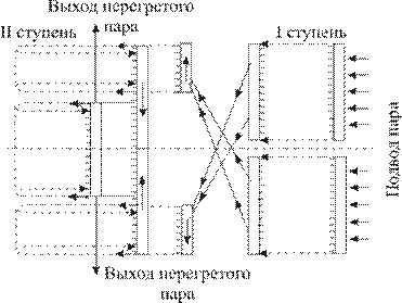 Рис. 46. Схемы движения пара и продуктов сгорания в конвективных