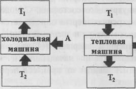 Учитывая второй закон термодинамики, схематически холодильную и тепловую машины можно представить, как показано на рис. 1 при