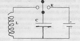Электрическое и магнитное поля могут быть не только постоянными, но и переменными. Для получения переменных полей используются различные приспособления, простейшим является колебательный контур, состоящий из последовательно соединенной катушки индуктивности L и конденсатора емкостью С (рис. 4).