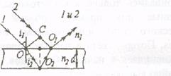 Рассмотрим интерференционную картину в отраженном свете. Лучи, идущие в направлении 1 и 2, интерферируют, так как