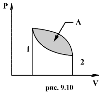 Круговым процессом (или циклом) называется такой процесс при котором система после ряда изменении возвращается в исходное состояние. На графике цикл изображается замкнутой кривой Работа совершаемая при круговом процессе, численно равна площади охватываемой кривой. После совершения цикла система возвращается в прежнее состояние. Поэтому всякая функция состояния, в частности внутренняя энергия, имеет в начале и в конце цикла одинаковое значение.