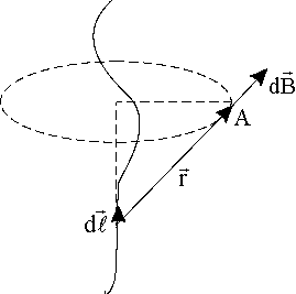Для магнитной индукции поля, создаваемого элементом dl тока I в некоторой точке А , была получена формула, которая носит название закона Био-Савара-Лапласа в дифференциальной форме