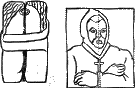 Объединяющая сила согласующейся формы символично использована в одной из картин Сезанна (рис. 47). Ощущается какая-то принужденность в положении скрещенных рук изображенного человека, которые кажутся скованными цепью и не могут существовать порознь. Этот эффект частично достигается расположением края рукава на вертикальной оси, которую образует симметричная линия: лицо — крест. Тем самым мощная связь между разумом человека и символом веры, которой посвящены его мысли, сковывает физическую деятельность тела и создает спокойствие сосредоточенной энергии.