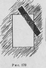 Структурная организация рис. 178 может быть изменена в обратном направлении. На рис. 179 видно, что черная просвечивающая полоса лежит поверх белого прямоугольника. Подобный эффект получается, если тень линейки падает на лист бумаги. Тень — это слой (или объем) темноты, воспринимаемый так, как будто он лежит сверху или находится перед предметом и обладает степенью яркости и цвета, отличающейся от яркости и цвета, присущих самому предмету.