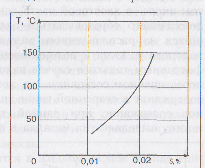 Рисунок 70 – Примерная зависимость температуры подогрева Т, снижающего склонность к ламелярному растрескиванию, от содержания серы в стали
