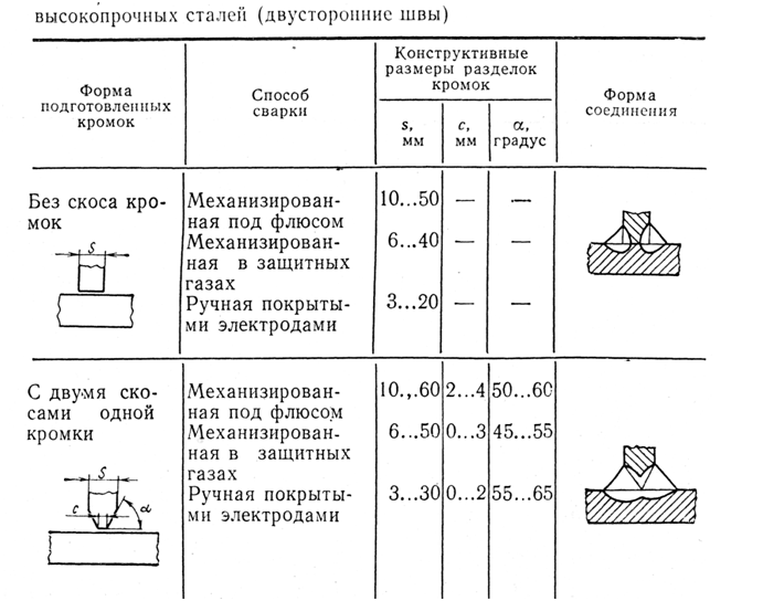 | Односторонний | Механизированная флюсом | под | 3...6 7...8 | 0...2 0...4 |