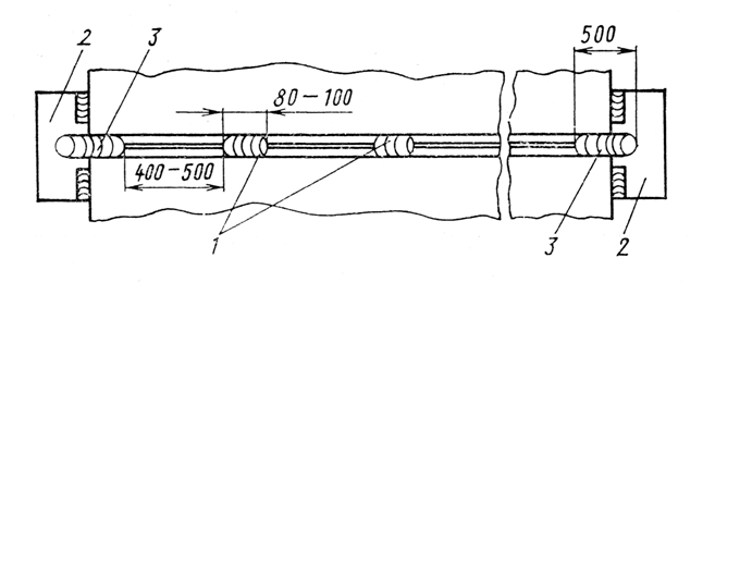 Рисунок 9 – Выполнение прихваток (1), приварка технологических выводных планок (2),наложение подварочного шва (3)стыковых соединений из стали 14Х2ГМР