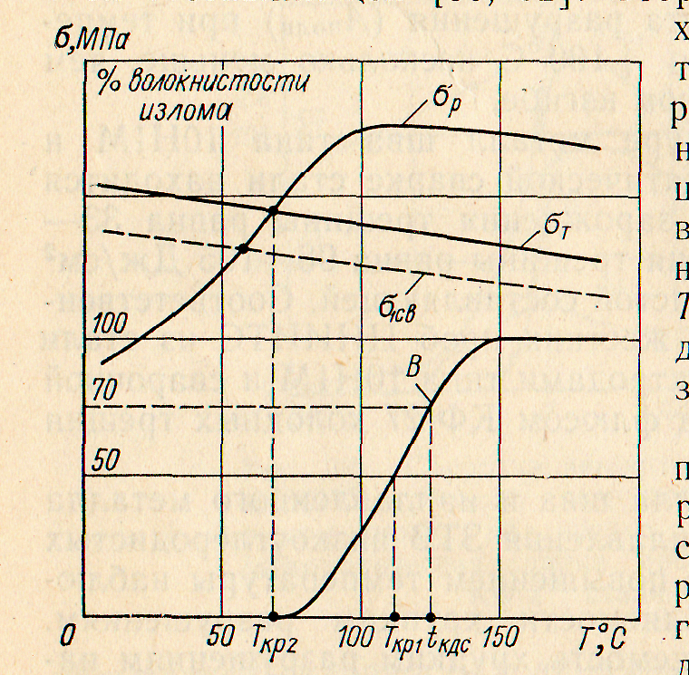 т. Выше ТКР1 металл находится в вязком состоянии и разрушения про-исходит вязко, ниже Ткр2 разрушение хрупкое, между ТКР1и Ткр2 разрушение квазихрупкое.