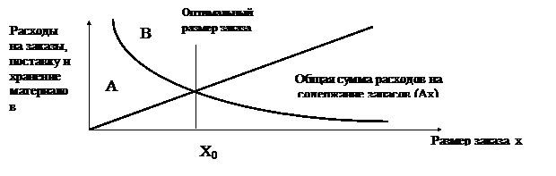 На основе количественной оценки зависимостей расходов на закупку и хранение материалов от количества закупаемого материала можно определить размер заказа, минимизирующий величину общих издержек при следующих допущениях: