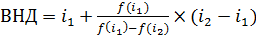 Использование подбора значений основывается на выборе двух последовательных ставок приведения, на промежутке между которыми показатель чистой текущей стоимости меняет свой знак с плюса на минус, а затем применяют формулу:
