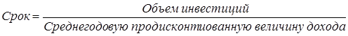 Дополнительным показателем оценки привлекательности инвестиционного проекта является срок окупаемости, который можно рассматривать как характеристику риска. Чем он больше, тем выше вероятность изменения условий для получения ожидаемого дохода. В общем виде срок окупаемости рассчитывается: