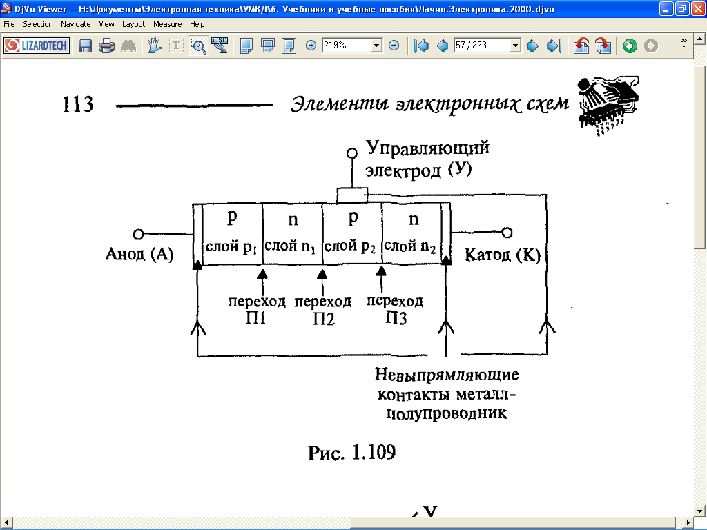 Конструктивно тринистор отличается только наличием управляющего электрода