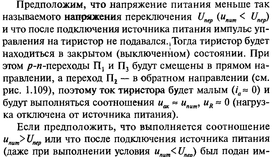 Тринистор- это динистор у которого напряжение включения может быть специально снижено, путём подачи импульса тока определённой длительности и величины на его управляющий электрод при положительной разности потенциалов между анодом и катодом.
