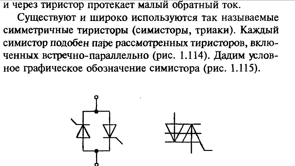 Симистор (симметричный тринистор) – это тиристор, по своей структуре подобный двум встречно-параллельным тринисторам и способным пропускать электрический ток в обоих направлениях.
