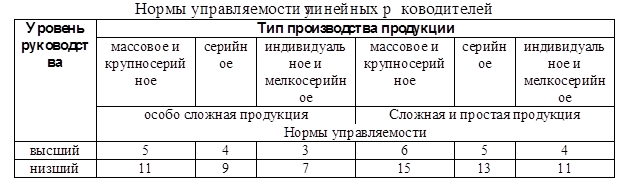 5. Каждый работник должен нести ответственность и иметь возможность для проявления инициативы. Важнейшим фактором, влияющим на выбор типа организационной структуры управления и её формирования, является норма управляемости (диапазона контроля, сферы управления).