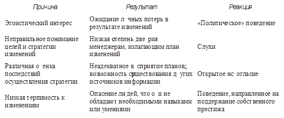 К причинам сопротивления изменения относятся также стереотипы сопротивления, формируемые под воздействием рутин поведения и определенных массовых ценностей.