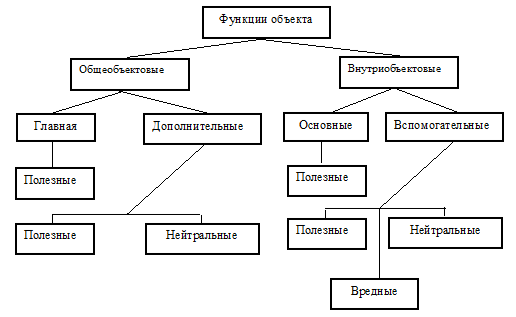 Функция есть то, что заставляет объект работать или быть популярным, привлекательным (пользоваться спросом), т. е. удовлетворять потребности заказчика (потребителя). При этом объект, включая структуру и услуги, является только средством обеспечения функции, ее носителем и не существует сам по себе, потому что без функции он никому не нужен. Следовательно, стоимость продукции (услуги) определяется стоимостью функции. Примерная классификаций функций показана на рис. 8.4.