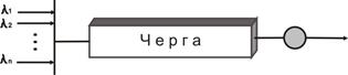 λ – інтенсивність вхідного потоку; µ – інтенсивність обслуговування;
