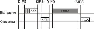 Рис. 5.7. Взаємодія між двома вузлами мережі відповідно до алгоритму RTS/CTS