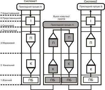 ПБ – послідовність біт; К – кадр; П – пакет; І – інформаційний блок