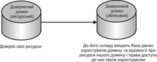Користувачі можуть входити до мережі не тільки з робочих станцій того домену, де зберігається їхня облікова інформація, але й з робочих станцій доменів, що довіряють цьому доменові. Домен, який зберігає облікову інформацію, часто називають обліковим, а домен, що довіряє, — ресурсним.