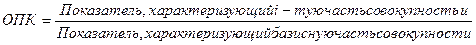 4. Относительный показатель координации (ОПК).Характеризуют отношение частей данной совокупности к одной из них, принятой за базу сравнения. ОПК показывают, во сколько раз одна часть совокупности больше другой либо сколько единиц одной части приходится на 1, 10, 100, 1000, ... единиц другой части. Относительные величины координации могут рассчитываться и по абсолютным показателям, и по показателям структуры.