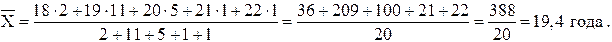 Приведем в качестве примера расчет среднего возраста студентов в группе из 20 человек: