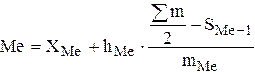 mMe - число наблюдений или объем взвешивающего признака в медианном интервале (также в абсолютном либо относительном выражении).