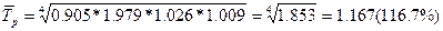 - средний коэффициент роста, рассчитанный как
