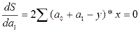 Поскольку х и у заданы, то S является величиной, зависимой от определяемых параметров а0 и ах: