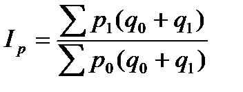 Представляет собой сравнение агрегированных цен, которые взвешены по физическим объемам текущего периода. Определяется по формуле