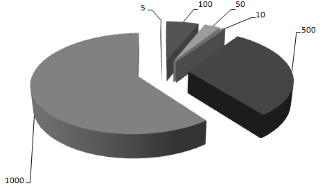 Для изучения динамики и тенденций в изменении купюрности строения денег рассчитывают показатель средней купюрности.