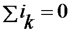 Первый закон Кирхгофа является следствием закона сохранения заряда, т.е. приходящий за определенное время к узлу заряд, равен заряду, уходящему за то же время от узла. Следовательно, заряд в узле не накапливается и не расходуется. Таким образом, первый закон Кирхгофа имеет следующую формулировку: алгебраическая сумма токов в ветвях, сходящихся в узле, равна нулю. В дальнейшем будем в уравнениях, составленных по первому закону Кирхгофа, считать токи, направленные к узлу отрицательными, а токи, направленные от узла положительными.