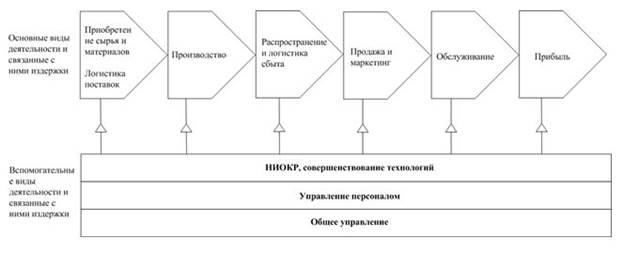 Цепочка ценностей компании является необходимым элементом стратегического анализа издержек, предназначенного для сравнения издержек основных конкурентов и определения конкурентной позиции компании по издержкам относительно конкурентов. Стандартная цепочка ценности компании: