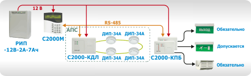 2. Контрольно-пусковые блоки «С2000-КПБ» с контролем целостности линии. К выходам данного блока также можно подключать световые и звуковые оповещатели. «С2000-КПБ» могут использоваться в случае, если исполнительных выходов прибора физически не хватает для подключения всех используемых в системе оповещателей, указателей и т.п.;