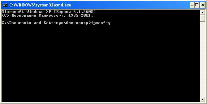 В этом окне вводим команду ipconfig