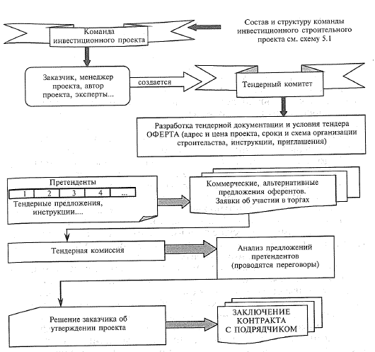 Выбор разработчикапроекта, тендерная процедура. В мировой практике выбор разработчика проектной документации производится на соревновательной базе, посредством проведения конкурсов, именуемых тендерами (бидами). За последние годы система тендерного отбора получила широкое распространение в России, и в: ряде-компаний-заказчиков стала обязательной процедурой.