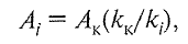 где кк, kj — константы равновесия ключевого и остальных компонентов при средней эффективной температуре абсорбции соответственно.