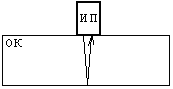 | В раздельно-совмещенном режиме аппаратуры импульсы ультразвуковых волн посылают в ОК. Если на тракте - дефект, то импульс частично отражается от него в совмещенный преобразователь (ИП) как эхо-сигнал. Отдельным приемником (П) оценивают падение амплитуды сквозного сигнала, вызванное дефектом. Обладает качествами эхо-метода + подтверждение дефекта теневым принципом, но требует двустороннего доступа к ОК. | ||||||