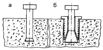 Наибольшее применение нашли два типа анкерных устройств. Первый тип - рабочий стержень с анкерной головкой (рис. 2.2.17, а), применяется для установки в свежеуложенный бетон.