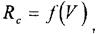 f - графическая зависимость объема разрушенного бетона от его прочности.