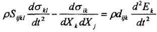 Уравнение движения упругой среды пьезоэлемента можно получить из 2-го закона Ньютона, если приравнять силу внутренних напряжений произведению ускорения на массу единицы объема тела: