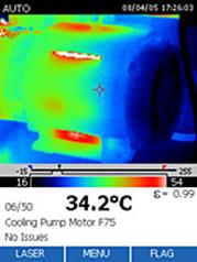 На рисунке 35 показан процесс обследования тепловизором агрегата (электродвигателя), а на рисунке 36 приведены некоторые примеры термограмм – итоговых документов инфракрасной дефектоскопии объектов.