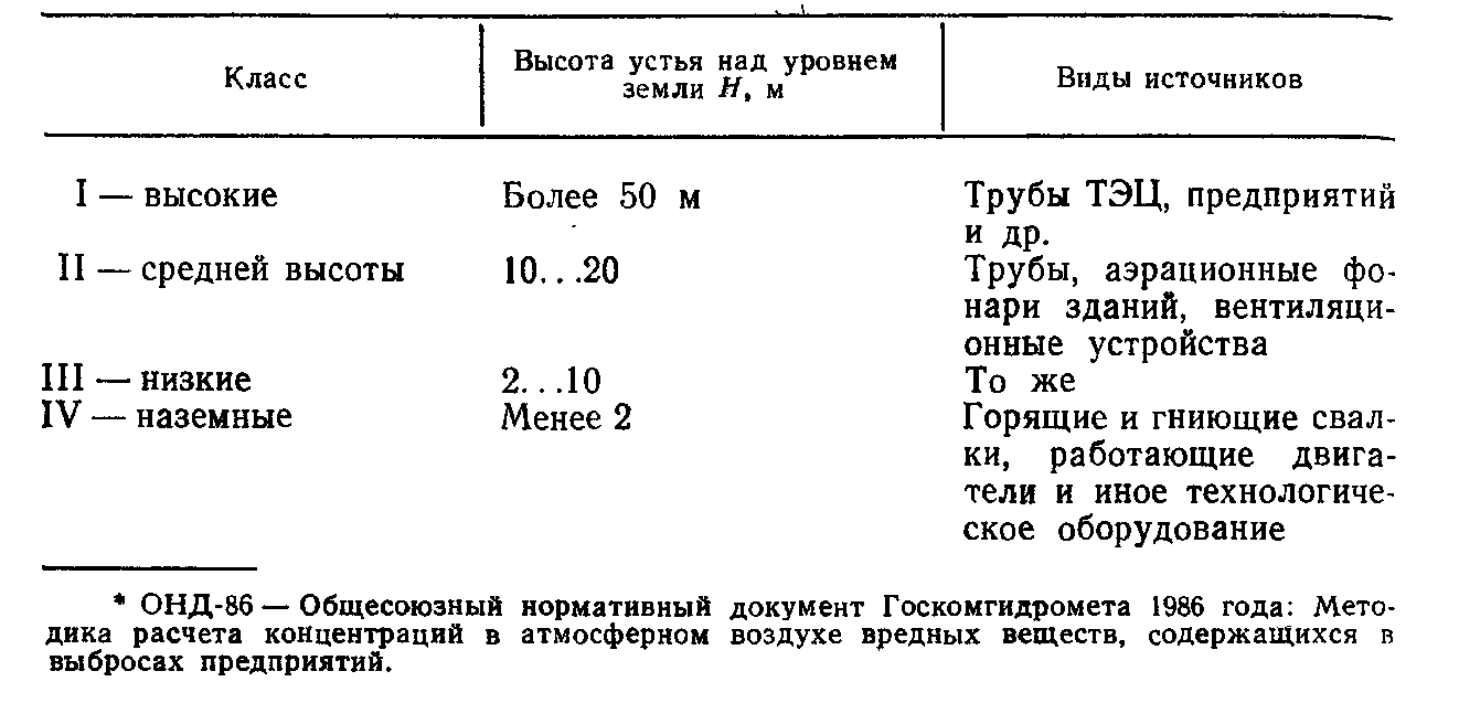 Табл. 8. Классификация источников загрязнения по ОНД-86