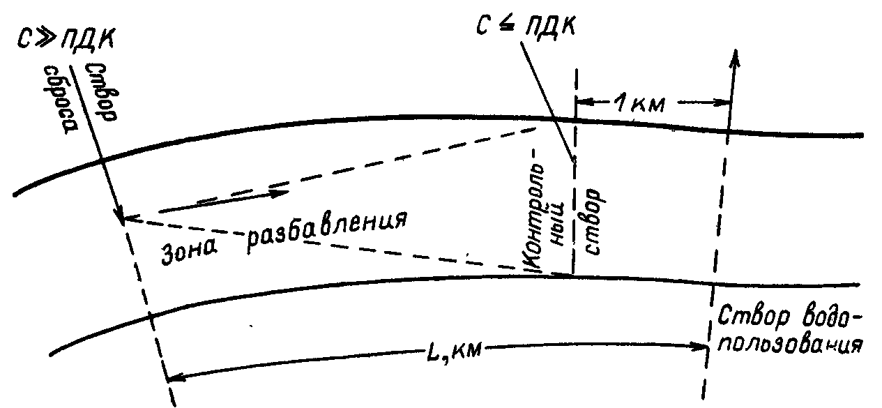 Рис. 5.1. Нормирование загрязняющих веществ в воде водотока